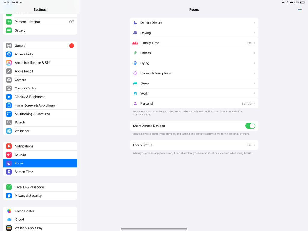 To set up your Focus modes, go to Settings > Focus, and tap the + icon in the top right to get started.