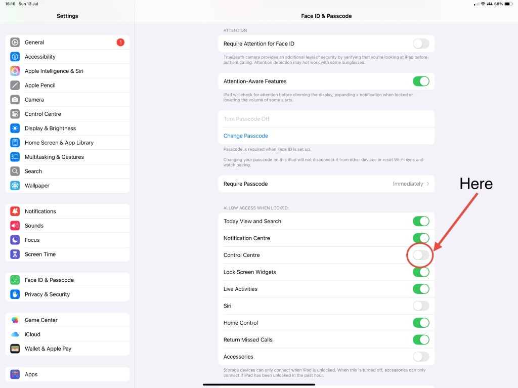 Make sure your Control Center is not accessible when your device is locked 🔒. Reason being, if your device is stolen, the thief can access your Control Center and switch off your WiFi, Bluetooth & Mobile data, making it much more difficult for you to locate. To prevent this from happening you need to disable Control Center from being accessible when your device is locked. To do this go to “Settings”, scroll down and tap “Face ID & Passcode”, enter your passcode and then disable Control Center.